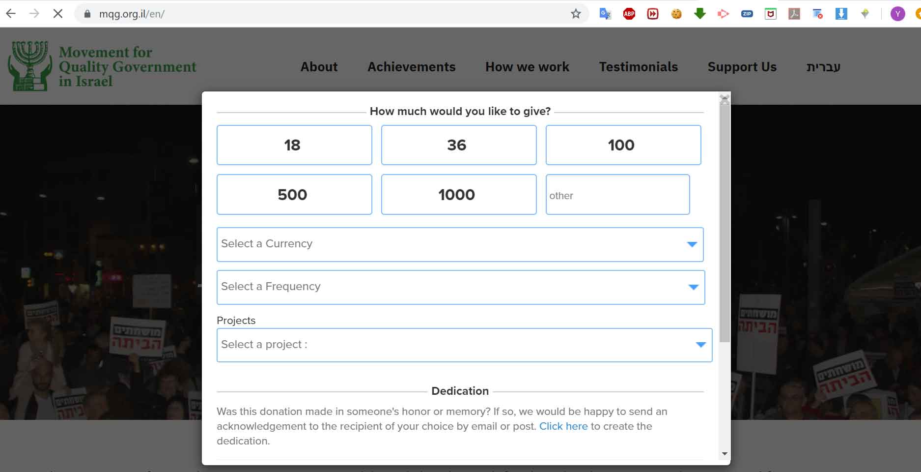 Once you check this, סיילספורס will present its system default options, and you can select one of them as the default selection for every new donor.